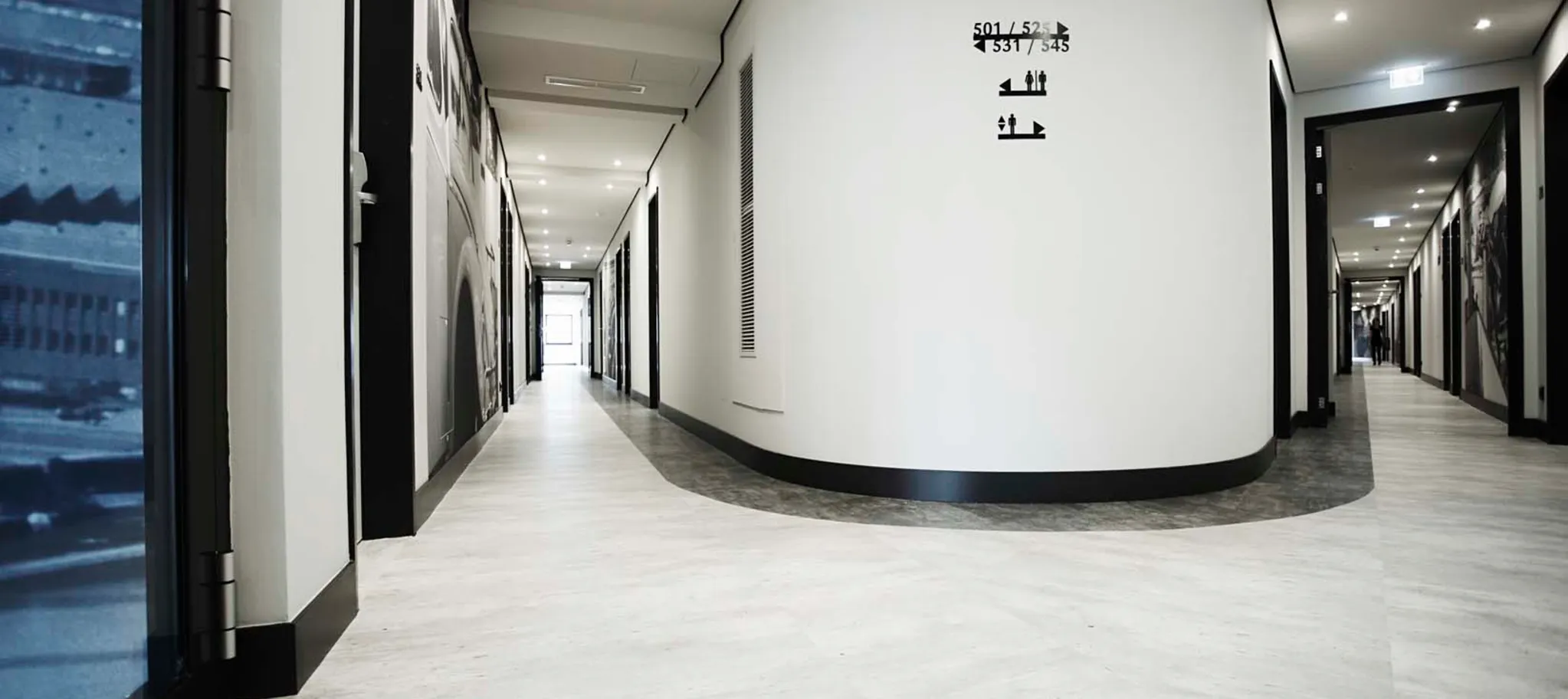 The elegant Innside business hotel is a popular urban lifestyle location at the heart of Wolfsburg. With its exclusive facilities and location, the superior 4-star hotel owned by the Spanish Melià Group is not only an ideal place to stay for exploring the city, it is also the perfect base for discerning business guests. Five conference rooms offering flexible options make it an ideal hotel for all types of business meetings. When it came to designing and choosing the best floor for the 2,000 square metres of corridor and circulation areas, Purline organic flooring, produced by Windmöller, was the perfect choice.